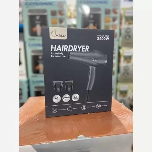 سشوار ولف w.wolf نیمه حرفه ای پرقدرت 2400 وات موتور AC دارای سری متمرکزکننده کیفیت عالی کد ۷۹۱۳