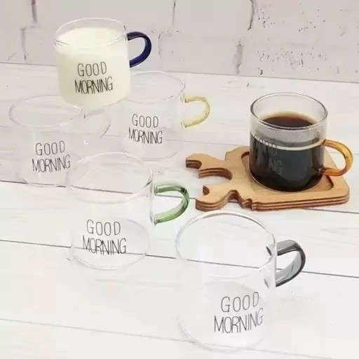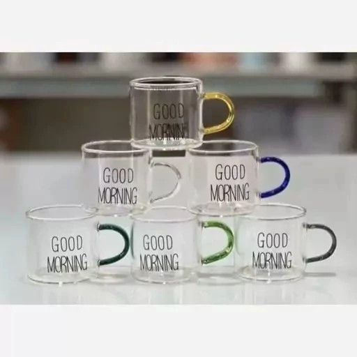 شات قهوه خوری 6 عددی پیرکس گود مورنینگ دبل دسته رنگی