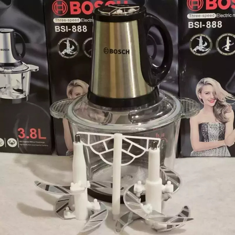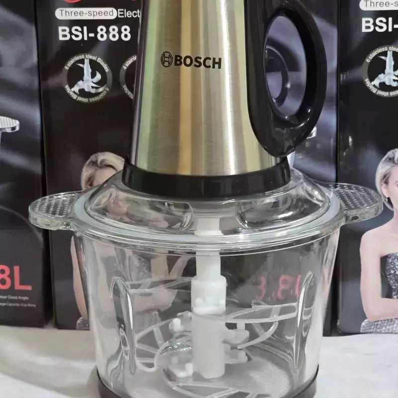 این محصول با دو تیغه 4 و 6 تایی عرضه میشود خردکن و غذا ساز بوش 3.8 لیتر امکانات خردکن: دارای همزن نحوه عملکرد: دکمه فشاری سه سرعته تعداد تیغه: دو تیغه شش عددی و چهار عددی امکانات: تفکیک قطعات نحوه شست و شو: شست و شوی اقلام جانبی در ماشین ظرفشویی ظرفیت ظرف خردکن: 3.8 لیتر توان: 3500w طول سیم: 1متر 🌟 **خردکن برقی چندکاره بوش – قدرت و کارآیی در یک دستگاه!** 🌟 آیا به دنبال یک دستیار حرفهای در آشپزخانهتان هستید؟ خردکن برقی بوش با توان 3500 وات و ظرفیت 3.8 لیتر، تمام نیازهای شما را برای آمادهسازی غذا برآورده میکند! این دستگاه با طراحی مدرن و کاربردیاش، به شما این امکان را میدهد که به آسانی و در کمترین زمان، مواد غذایی را خرد، مخلوط و هم بزنید. 🥗✨ **چندین ویژگی منحصر به فرد!** 🔍 این خردکن برقی با سه سرعت مختلف، به شما این امکان را میدهد که به دلخواه خود، سرعت مناسب را انتخاب کنید. با وجود 10 تیغه کارآمد (دو تیغه 4 و 6 تایی)، میتوانید انواع مواد غذایی از میوه و سبزیجات تا گوشت و آجیل را به طور یکنواخت و سریع خرد کنید. همچنین، جنس کاسه پیرکس آن نه تنها به زیبایی دستگاه میافزاید، بلکه مقاومت بالایی نیز دارد و برای استفادههای مکرر مناسب است. 🍏🥩 **راحتی در شستشو و استفاده!** 🧼 با توجه به قابلیت شستشوی اجزای جانبی در ماشین ظرفشویی، دیگر نگران تمیز کردن دستگاه نباشید! طراحی تفکیکپذیر این خردکن، به شما این امکان را میدهد که به راحتی قطعات آن را جدا کرده و شستشو کنید. علاوه بر این، سیستم لرزهگیر آن موجب ثبات و ایمنی بیشتر در حین کار میشود، بنابراین میتوانید بدون نگرانی از جابجایی دستگاه، به کار خود ادامه دهید. ⚙️👌 با طول سیم 1 متر، این خردکن برقی به شما آزادی حرکت بیشتری در آشپزخانه میدهد و به راحتی میتوانید آن را در هر نقطهای که میخواهید قرار دهید. همچنین، وجود همزن در این دستگاه، شما را از تهیه همزنهای جداگانه بینیاز میکند و به شما این امکان را میدهد که خمیرها و مایههای مختلف را نیز به راحتی آماده کنید. 🍞🥞 اگر به دنبال یک دستگاه همهکاره و قدرتمند برای آسانتر کردن کارهای آشپزی هستید، خردکن برقی بوش گزینهای عالی برای شماست. همین امروز آن را امتحان کنید و تجربهای جدید از آشپزی سریع و لذتبخش را برای خود رقم بزنید! 🎉👩🍳