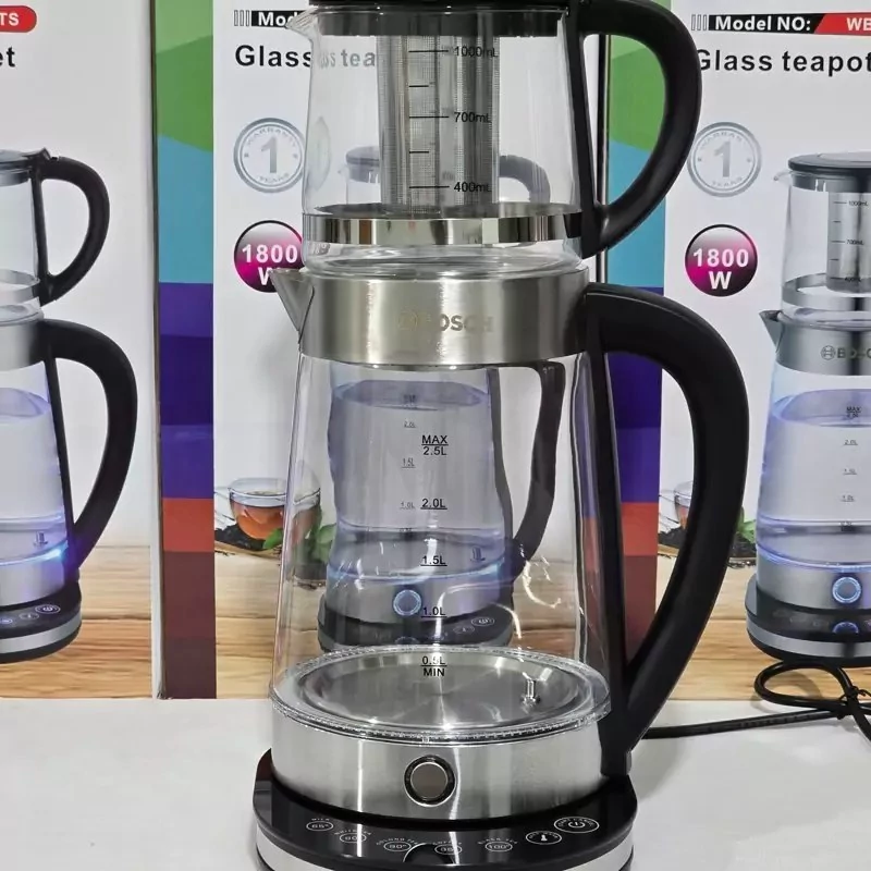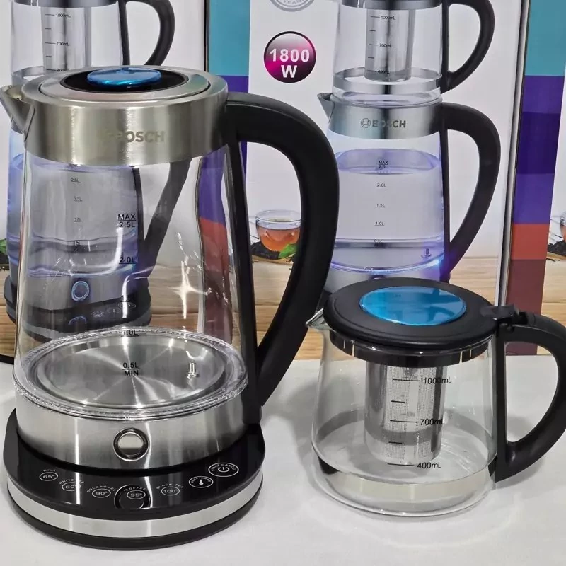 چای ساز روهمی بوش 👈 مدل WB-129TS تمام لمسی👉 کنترل پنل دیجیتالی دارای المنت استیل از نوع ضد زنگ سیستم گرم نگهدار هوشمند شیشە مقاوم در برابر حرارت امکانات :چرخش 360 درجه امکانات ظاهری:پنل لمسی امکانات نگهداری نوشیدنی:صفحه گرم نگه دارنده تعداد تنظیمات دما:5 تعداد دمای قابل تنظیم:5 محل قرارگیری قوری:روی هم ویژگیهای نظافتی:فیلتر تفاله گیر چای 💢چای ساز و قهوه ساز 💢توان 1800 وات 💢ظرفیت کتری 2.5 لیتری 💢ظرفیت قوری 1 لیتری 💢مجهز به فیلتر تمام استیل در داخل قوری 💢مجهز به سیستم خاموش شدن اتوماتیک 💢دارای المنت های حرارتی پنهان 💢دارای سر اضافی برای کتری 💢نگه داشتن درجه حرارت جوش با صرف انرژی کم چای ساز بوش مدل WB-129TS چای ساز بوش مدل WB-129TS با دستگیره های عایق حرارت و بدنه مقاوم در برابر حرارت بالا تونسته محبوبیت بالایی درمصرف کننده ها بدست بیاورد. این چایساز دارای توان مصرفی 1800وات وظرفیت قوری 1لیتر وظرفیت کتری2.5 لیتر است. جنس بدنه کتری بوش WB-129TS شیشه مقاوم وجنس قوری آن از پیرکس می باشد. چای ساز روهمی بوش مدل WB-129TS تمام لمسی چای ساز و قهوه ساز توان 1800 وات واقعی ظرفیت کتری 2.5 لیتری ظرفیت قوری یک لیتری مجهز به فیلتر تمام استیل در داخل قوری مجهز به سیستم خاموش شدن اتوماتیک دارای المنت های حرارتی پنهان دارای سر اضافی برای کتری نگه داشتن درجه حرارت جوش با صرف انرژی کم نگهداشتن آب داغ و جوش بین 65 تا 100 درجه سانتیگراد طبق سلیقه شما ست قوری شیشه ای مدل WB-129TS پانل کنترل لمسی با دکمه روشن/خاموش و 3 دکمه کنترل دما، برای انتخاب آزادانه بین 65 درجه سانتیگراد تا 100 درجه سانتیگراد بنا به درخواست شما. مجهز به حلقه نوری ال ای دی برای روشن شدن تمام بدنه شیشه ای در هنگام جوشیدن. دارای نمایشگر LCD که دمای لحظه ای آب را نشان می دهد. دارای کنترل محافظ گرمایش بیش از حد می باشد. ### چای ساز لمسی بوش مدل WB-129TS : تجربهای بینظیر از نوشیدنیهای داغ ☕✨ اگر شما هم از دوستداران چای و قهوه هستید و به دنبال دستگاهی با کیفیت و کارآمد برای تهیه نوشیدنیهای گرم میگردید، چای ساز لمسی بوش مدل WB-129TS گزینهای عالی برای شماست. این چای ساز با طراحی شیک و مدرن خود، به راحتی میتواند به دکور آشپزخانه شما زیبایی بخشد و تجربهای منحصر به فرد از نوشیدنیهای داغ را برایتان رقم بزند. #### ویژگیهای برجسته چای ساز بوش با قدرت 1800 وات و ظرفیت 2.5 لیتری کتری و 1 لیتری قوری، به شما این امکان را میدهد که به آسانی برای خانواده یا مهمانان خود نوشیدنی تهیه کنید. بدنه شیشهای مقاوم در برابر حرارت و قوری از جنس پیرکس، به شما اطمینان میدهد که کیفیت و ایمنی دستگاه در بالاترین سطح قرار دارد. علاوه بر این، طراحی پنل لمسی دیجیتال و صفحه نمایش LCD، استفاده از دستگاه را بسیار آسان و لذتبخش کرده است. 🌟 #### سیستم گرم نگهدار هوشمند یکی از ویژگیهای منحصر به فرد این چای ساز، سیستم گرم نگهدار هوشمند آن است که به شما این امکان را میدهد تا دمای آب را بین 65 تا 100 درجه سانتیگراد به دلخواه تنظیم کنید. این ویژگی به شما کمک میکند تا همیشه چای یا قهوهای با دمای مورد علاقهتان نوش جان کنید. #### امکانات کاربردی چای ساز بوش WB-129TS همچنین مجهز به المنتهای حرارتی پنهان و فیلتر تمام استیل است که به شما این اطمینان را میدهد که نوشیدنیهای شما همیشه تازه و خوشطعم خواهند بود. به علاوه، سیستم خاموش شدن اتوماتیک و محافظ گرمای بیش از حد، ایمنی دستگاه را افزایش میدهند و خیال شما را از بابت استفاده آسان و بیخطر راحت میکنند. #### طراحی زیبا و کاربرپسند چای ساز بوش با چرخش 360 درجه، به شما این امکان را میدهد تا به راحتی قوری را بر روی کتری قرار دهید. این ویژگی نه تنها استفاده از دستگاه را آسانتر میکند، بلکه به زیبایی دکور آشپزخانه شما نیز میافزاید. 💖 با چای ساز لمسی بوش مدل WB-129TS ، لحظاتی دلنشین و گرم را در کنار خانواده و دوستانتان تجربه کنید. صرفهجویی در انرژی و راحتی در استفاده، این چای ساز را به یکی از بهترین انتخابها برای هر خانها