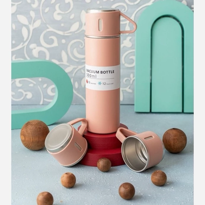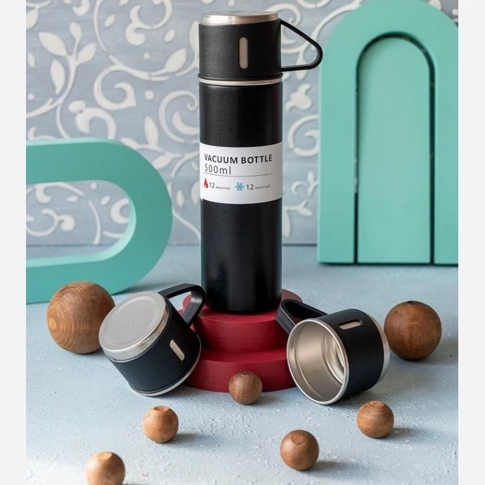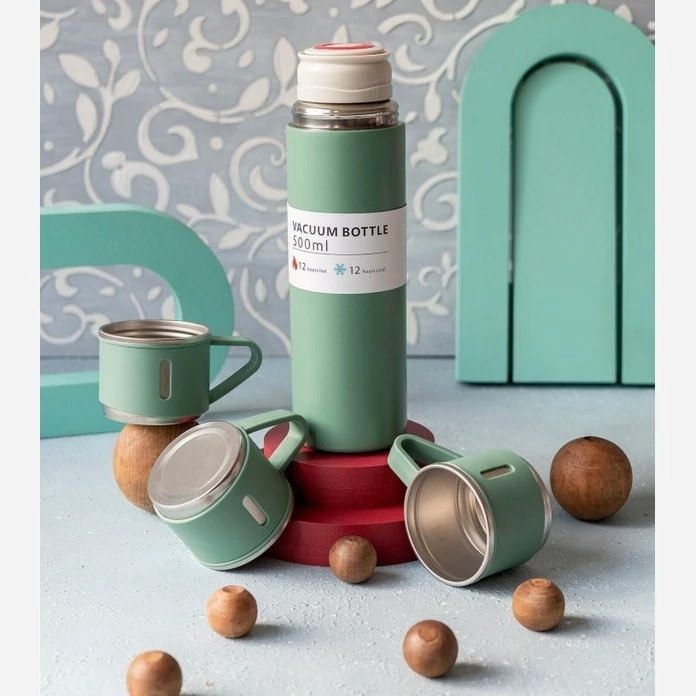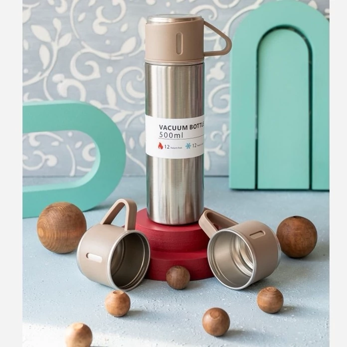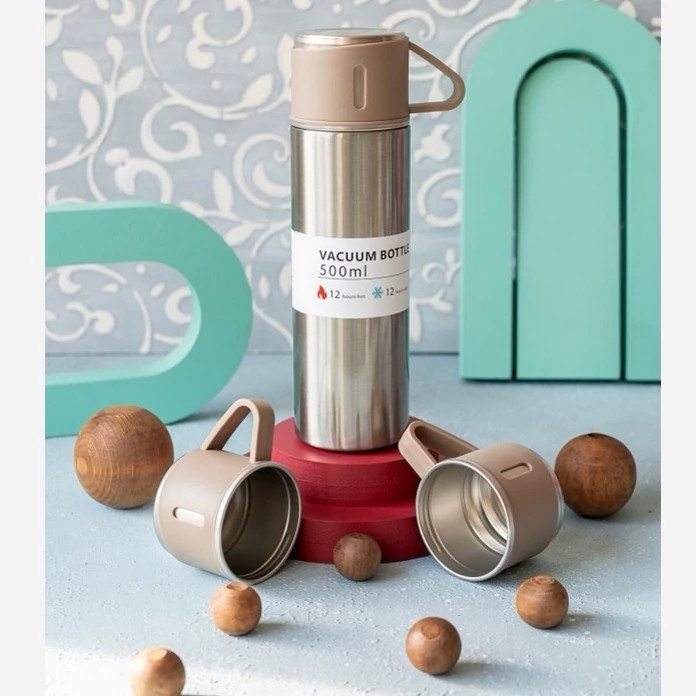 فلاسک مدل کادویی VACUUM FLASK SET گنجایش 0.5 لیتر به همراه لیوان مجموعه 3 کد ۸۱۹۲