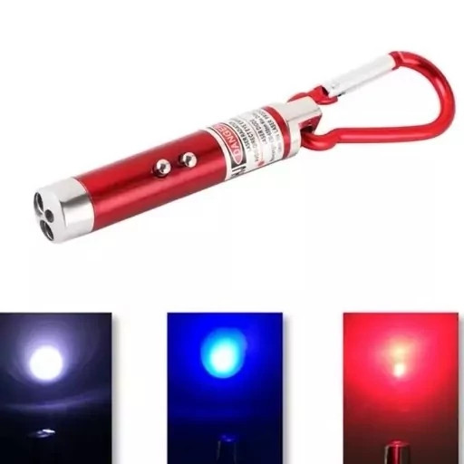 لیزر 3 کاره علاوه بر اینکه یک لیزر نیمه هادی با خروجی نور قرمز و با توانی در حدود 5 میلی وات می باشد که برای نشان دادن اشیاء و یا نوشته های روی تخته وایت برد و یا پرده نمایش بسیار مناسب است ، دارای چراغ قوه با یک ال ای دی نور سفید هم می باشد. از طرفی با دارا بودن یک LED با نور بنفش که پرتو فرابنفش هم ساطع می کند برای تشخیص اصالت اسکناس از طریق اشکار کردن تکه های فلورسانس ، نیز کاربرد دارد . تغذیه دستگاه بر عهده 3 عدد باتری AG13 می باشد که در داخل دستگاه قرار داده شده است و برای فعال کردن دستگاه در پیچی انتهای دستگاه را باز کرده و تکه کاغذ که بین دو باتری قرار داده شده را خارج کنید. طول موج لیزر 630 تا 650 نانومتر و قطر پرتو آن 3 میلی متر می باشد. هر کدام از لیزرها دارای گیره ای برای آویزان کردن می باشد . نوع کریستال لیزر نیمه رسانا است . این محصول قابل استفاده در کلاس ها و ارائه کنفرانس های گروهی (نور قرمز) و مناسب برای تشخیص اسکناس های اصل و تقلبی (نور بنفش) می باشد. ابعاد این محصول 7 * 1.3 میلی متر و وزن آن حدود 100گرم می باشد. جنس بدنه آن پلاستیکی است و به صورت خودکار خاموش نمی شود. ابعاد: 1.3 × 7 سانتیمتر باتری: دارد نوع باتری: سه عدد باتری AG 13 قابلیت خاموش شدن خودکار: ندارد قدرت خروجی: 5 میلی وات طول موج: 630 تا 650 نانومتر نوع کریستال لیزر: نیمه رسانا قطر پرتو: 3 میلی متر کشور ساخت: چین ویژگیها: - نور لیزر قرمز - دارای چراغ قوه - نور دهی بسیار خوب - دارای سه عدد باتری - دارای نور فرابنفش برای تست اسکناس - وسیله ای بسیار مناسب برای استفاده در کلاس ها و ارائه ی کنفرانس ها