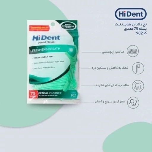 نخ دندان کمانی های دنت 3 بسته 75 عددی کد 902نخ دندان هایدنت کمانی دسته دار کد ۷۷۲۱