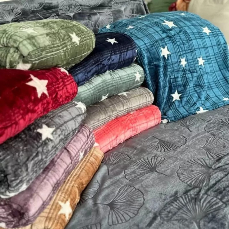 پتو مسافرتی دونفره ابریشمی قلبی و ستاره ای کد ۷۴۶۵