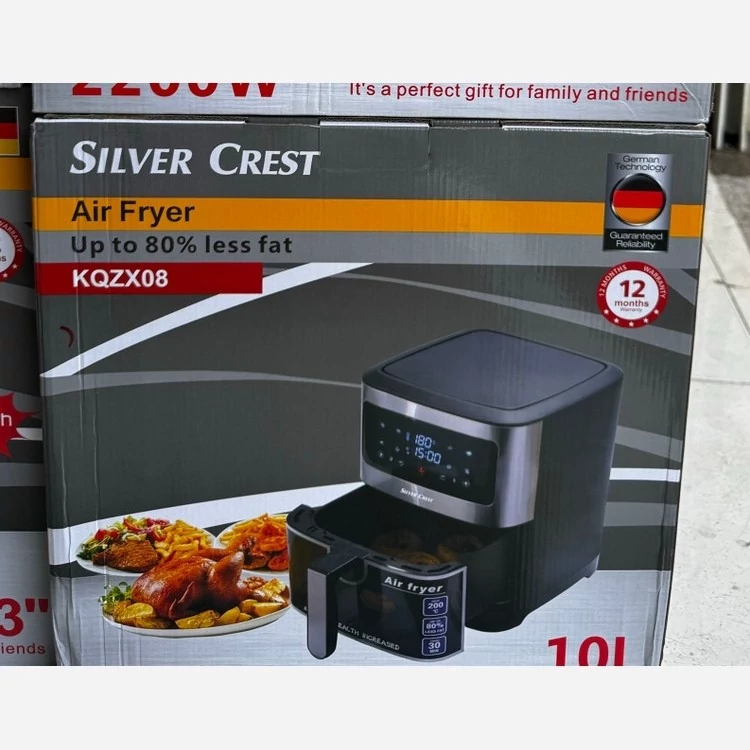 سرخ کن بدون روغن سیلورکرست 10 لیتری مدل KQZX08 با طراحی زیبا و ظرفیت 10 لیتری مناسب انواع پخت و پز رزیمی و بدون روغن است.این مدل دارای صفحه دیجیتالی می باشد که اطلاعات مختلف چرخه پخت و پز و سرخ کردن مثل دمای پخت و زمان باقی مانده را نشان می دهد. دارای 8 برنامه پخت و برنامه گرم نگهداشتن غذا است جنس بدنه از استیل و پلاستیک مخصوص است. ظرفیت بالا 10 لیتر و قدرت بالا 2200 وات است. این سرخ کن با ظرفیت بالا، مناسب برای انواع غذاهای لذیذ مانند: مرغ کباب، ماهی کباب، گریل، کیک، بال مرغ سوخاری، نان و کلوچه پخته شده است . سیستم گردش هوای گرم غذای آماده شده را به طور یکنواخت می پزد .دستگاه ما به راحتی تمیز می شود، می توانیم توری کف را در چند لحظه زیر آب جاری بشوییم. علاوه بر این، دستگاه ما دارای یک مخزن به راحتی قابل جابجایی است که چربی از محصولات سرخ شده در زیر آن جریان می یابد. پس از اتمام کار کافیست آن را بیرون بکشید و همچنین زیر آب جاری بشویید. فرقی نمی کند سبزیجات سرخ کنید، سیب زمینی سرخ کرده یا گوشت سرخ کنید، این دستگاه همه کاره پخت همه چیز را به روشی سالم تر ممکن می کند .شکل کانتور سرخ کن و گردش هوای هوا باعث می شود غذاها به طور یکنواخت سرخ شوند