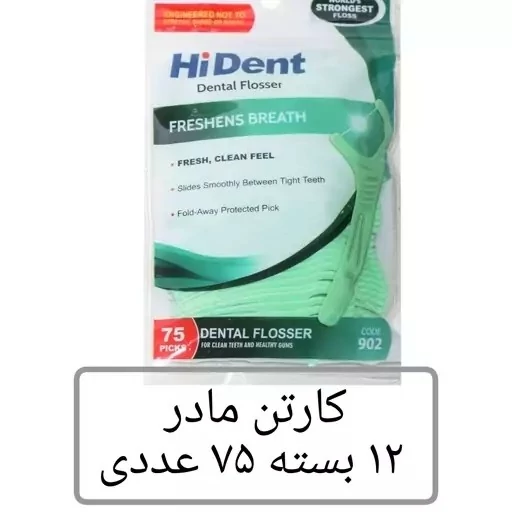 نخ دندان کمانی هایدنت کد 902 عمده 12 بسته 75 عددی نخ دندان هایدنت کمانی دسته دار همراه خلال دندان کد ۷۲۷۱