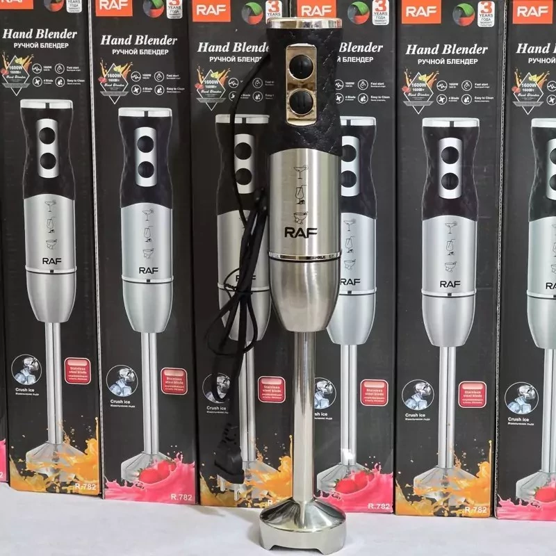 گوشت کوب راف مدل R.782 گوشت کوب چهار تیغه راف بدنه استیل 1600 وات واقعی یخ شکن دار دو دور موتور دارای درجه کم زیاد موتور به اندازه دلخواه موتور سنگین کیفیت عالی زیر قیمت بازار رسید گوشت کوب برقی راف تک کاره 1600 وات مدل R.782 از یک موتور گیربکسی دو سرعته با قدرت 1600 وات بهره میبرد که همین امر موجب می شود به راحتی انواع گوشت را با تیغه های استیل و قدرتمند کوبیده و له کند. همچنین علاوه بر له کردن، آسیاب و مخلوط کردن مواد غذایی را نیز انجام می دهد که می توان از این قابلیت برای تهیه اسموتی ها، تهیه سس و یا پوره کردن سیب زمینی استفاده کرد. کار با این دستگاه ساده بوده و می توان با استفاده از دکمه های تعبیه شده روی بدنه، سرعت آن را کنترل کرد. همچنین سری گوشت کوب برقی راف مدل R.782 به گونه ای طراحی شده است که باعث میشود مواد غذایی شما در هنگام مخلوط کردن به اطراف ظرف ریخته نشود. و در آخر تیغه گوشت کوب برقی راف تک کاره 1600 وات مدل R.782 را جدا کنید و به راحتی بشویید. ### گوشت کوب برقی راف مدل R.782: دوست همیشگی آشپزخانه شما! 🍽️✨ آیا به دنبال وسیلهای هستید که آشپزی را برای شما آسانتر و لذتبخشتر کند؟ گوشت کوب برقی راف مدل R.782 با طراحی مدرن و ویژگیهای فوقالعادهاش، به یکی از ضروریترین لوازم خانگی شما تبدیل خواهد شد! با قدرت 1600 وات، این گوشت کوب برقی میتواند به راحتی انواع گوشت را خرد و له کند و به شما امکان میدهد تا در مدت زمان کوتاهی، غذاهای خوشمزه و متنوعی تهیه کنید. 🔪💪 این محصول با چهار تیغه استیل ضد زنگ، که به راحتی و با دقت به کار میافتد، میتواند به شما در تهیه اسموتیهای خوشمزه، سسهای متنوع و حتی پوره کردن سیب زمینی کمک کند. با دو سرعت متفاوت، میتوانید به راحتی تنظیمات را تغییر دهید و با توجه به نیاز خود، از حالت ضربهای و قابلیت یخ شکن آن بهرهبرداری کنید. به این ترتیب، هیچ محدودیتی برای خلاقیت شما در آشپزی وجود ندارد! 🥤❄️ بدنه استیل مشکی این دستگاه علاوه بر زیبایی، دوام و استحکام بالایی را به همراه دارد. کابل یک متری آن نیز به شما این امکان را میدهد تا بدون نگرانی از فاصله پریز، به راحتی از دستگاه استفاده کنید. و مهمتر از همه، تمیز کردن این دستگاه بسیار آسان است؛ فقط کافیست تیغه را جدا کنید و آن را بشویید. 🧼✨ با خرید گوشت کوب برقی راف مدل R.782، شما دیگر نیازی به ابزارهای متعدد برای انجام کارهای مختلف نخواهید داشت. این دستگاه چند کاره میتواند به عنوان همزن، خردکن و حتی برای تهیه اسموتیهای خوشمزه مورد استفاده قرار گیرد. بنابراین، با یک خرید، چندین ابزار در آشپزخانه خود خواهید داشت. به جمع هواداران گوشت کوب برقی راف بپیوندید و تجربهای جدید و هیجانانگیز از آشپزی را به خود هدیه دهید! 🎉👩🍳👨🍳
