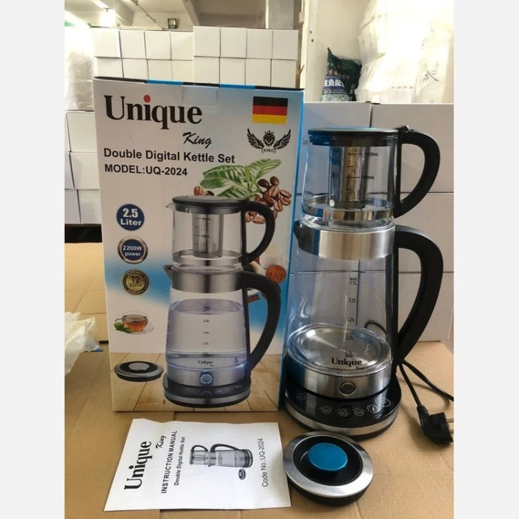 توان مصرفی : 2200 وات ظرفت کتری : 2.5 لیتری ظرفیت قوری : 1 لیتری جنس بدنه : شیشه پیرکس صفحه نمایش : تمام لمسی دیجیتال تنظیم دما : دارد قابلیت گرم نگهدارند آب : دارد سیستم قطع کن خودکار : دارد فیلتر : دارد