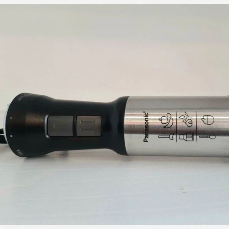 گوشت کوب برقی پاناسونیک دارای بدنه ی مقاوم و ساخته شده از ترکیب استیل و پلاستیک ABS می باشد .دارای توان 1500 وات و کنترل سرعت که به دو صورت کند و تند و روی سری گوشت کوب برای کنترل سرعت به میزان دلخواه کلید ولومی شکل تعبیه شده تا کاربر نسبت به نیاز خود سرعت دستگاه را کنترل کند ،از مزیت گوشت کوب پاناسونیک فیوز حرارتی تعبیه شده در موتور می باشد که کمک به سزای در عمر دستگاه دارد، درصورت استفاده ی زیاد و داغ شدن موتور دستگاه، گوشت کوب خودکار خاموش می شود و تا زمانی که موتور دستگاه خنک نشود دستگاه خاموش می ماند و از خرابی دستگاه جلوگیری میکند. توجه قبل از استفاده از گوشت کوب سرعت مورد نظر را تنظیم کنید و از افزایش و کاهش در هنگام استفاده خودداری کنید