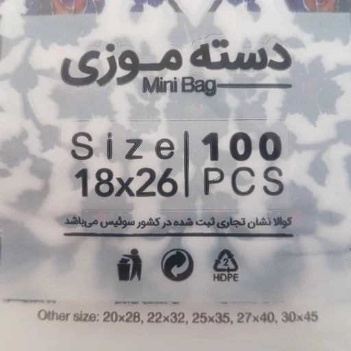 کیسه خرید کوالا 26در18 کیسه فروشگاهی بسته 100 عددی کیسه خرید دسته موزی نایلونی کوالا کیسه خرید نایلون کد ۶۸۱۸