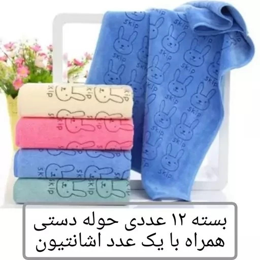 ابعاد:35 × 75 سانتیمتر سایر توضیحات:حوله دستی ورزشی و مسافرتی جنس:میکروفایبر درباره محصول بسته 1+12 عددی حوله دست و صورت خرگوشی میکرو فایبر ابعاد 35 × 75 سانتیمتر رنگهای صورتی ، آبی ، زرد ، نارنجی ، سبز ، بنفش موجود است حوله دست و صورت میکروفایبر خرگوش مدل Enjoy house از الیافت با کیفیت ساخته شده است که قدرت بسیار بالایی در جذب و آبگیری را دارد. سایز این حوله سایز 35 × 75 می باشد.