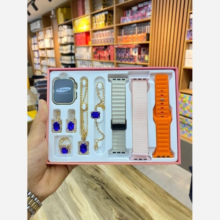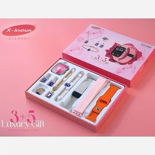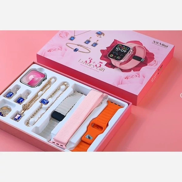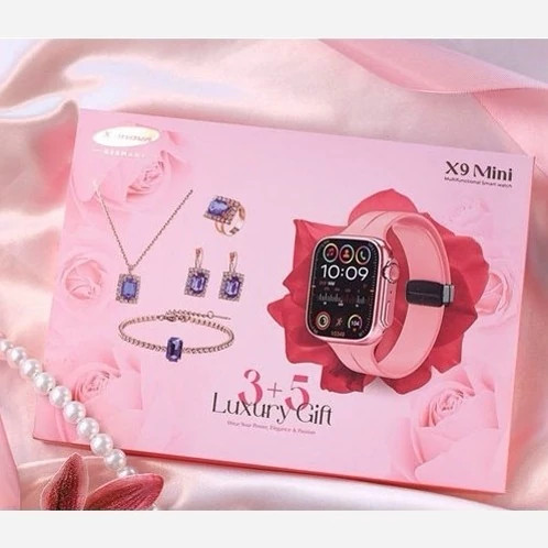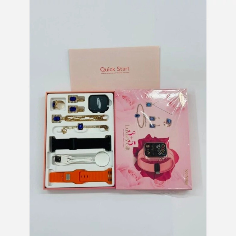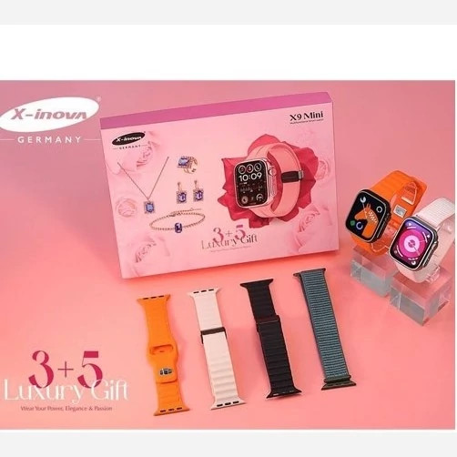 مدل: X9 mini تماس به وسیله بلوتوث داری اپلیکشن اختصاصی قابلیت شارژ وایرلس: دارد درارای Health Monitoring نمایش نوتیفیکشن فارسی و انگلیسی بند ها: دارای 3 بند ایده آل و منحصر بفرد اقلام همراه: 5 ست جواهرات لوکس ، 3 بند مد روز