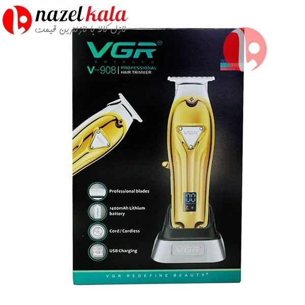 ماشین اصلاح سر و صورت حرفه ای وی جی آر VGR مدل 908 ماشین اصلاح سر و صورت حرفه ای وی جی آر VGR مدل 908 این محصول قابلیت دوسرعته شدن را دارد و با شارژرهای همه موبایلهای دارای یو اس پی شارژ میشود و همچنین قابلیت استفاده همزمان با برق و شارژ را دارد. ماشین اصلاح سر و صورت حرفه ای وی جی آر VGR مدل 908 ماشین اصلاح وی جی ار مناسب اصلاح ریش و موی سر و خط زنی پرقدرت,یک ماشین اصلاح بسیار با کیفیت عالی میباشد این دستگاه دارای یک نمایشگر دیجیتال میباشد که میزان شارژ دستگاه میدهد. این محصول قابلیت دوسرعته شدن را دارد و با شارژرهای همه موبایلهای دارای یو اس پی شارژ میشود و همچنین قابلیت استفاده همزمان با برق و شارژ را دارد.و دارای 3 عدد شانه 1 و 2 و 3 میباشد.دارای برس تمیز کننده و یک عدد روغن برای روغن کاری است.دارای شارژ مخصوص رومیزی و زیبا میباشد . مشخصات زمان شارژ کامل 3ساعت زمان استفاده پس از شارژ 3ساعت طراحی ارگانیک پرقدرت و دست خور مناسب اصلاح آرایشگاهها کیفیت خوب بهترین خط زنی اصلاح صورت اصلاح سر