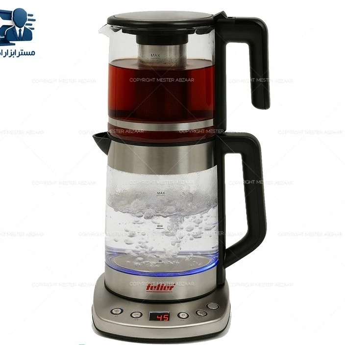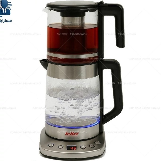 چای ساز دو طبقه 2200 وات 3.7 لیتری دیجیتال فلر آلمان مدل Feller Germany PRO TS-210 روهمی چای ساز فلر مدل 210 یکی از دستگاه های خوش قیمت و با کیفیت موجود در بازار بوده که ما آن را برایتان در مستر ابزار اهواز موجود نموده ایم. به کمک این دستگاه شما می توانید به راحتی در مکان های مختلف اعم از خانه، مغازه، محل کار، شرکت و …. برای خود و همکارانتان چای آماده نمایید. برای اطلاعات بیشتر راجب این دستگاه با ما همراه باشید. معرفی محصول شرکت فلر یکی از کمپانی های معروف در کشور چین بوده که لوازم برقی بسیار با کیفیت به صورت تحت لیسانس آلمان را تولید می نماید. طراحی ظاهری چای ساز های فلر نیز بسیار شیک و مدرن هستند. بدنه ی این دستگاه از شیشه عایق بوده و هارمونی جالبی را با دیگر لوازمتان ایجاد می نماید. قدرت موتور این دستگاه 1850 - 2200 وات بوده و در چشم بر هم زدنی آب و چای را برایتان جوش و دم می آورد. ظرفیت کتری این دستگاه، 2.2 لیتر و حجم قوری آن 1.5 لیتر است. که در مجموع 3.7 لیتر ظرفیت دارد همچنین این دستگاه قابلیت تنظیم دما را در چند سطح مختلف دارد. و در پایان چای ساز فلر مدل 210 بسیار ارزان قیمت، با کیفیت و شیک و مدرن است. در ادامه شما را با مشخصات فنی دستگاه آشنا می سازیم. مشصخصات فنی چای ساز فلر دارای صفحه دیجیتال دکمه ای نام دستگاه: چای ساز نوع دستگاه: روهمی برند: Feller Germany PRO TS-210 منبع تغذیه: برقی کشور سازنده: چین تحت لیسانس آلمان قدرت و توان مصرفی: 1850-2200 وات قابلیت چرخش 360 درجه: دارد نوع گرمایش چای ساز: المنت حرارتی مخفی خاموش شدن خودکار: دارد قطع کن خودکار: دارد جنس فیلتر: استيل ضد زنگ ظرفیت کتری: 2.2 لیتر جنس کتری: شیشه عایق و استیل ضد زنگ کلید روشن و خاموش: دارد محفظه برای جمع كردن سیم برق: دارد جنس قوری: شیشه عایق ظرفیت قوری: 1.5 لیتر امکان: قرار دادن قوری روی کتری آب برای گرم نگه داشته شدن درجه سطح آب: دارد