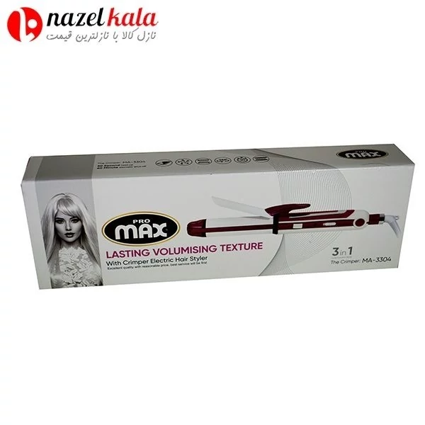 اتو مو سه کاره پرومکس مدل MA-3304 . ویژگی های محصول جنس صفحات :سرامیک مدت زمان گرم شدن : 30 ثانیه حداکثر دما : 200 درجه سانتیگراد طول سیم: 1.8 متر سیم گردان : دارد عملکرد : صاف و ویو کننده نشانگر روشن خاموش: دارد گرمایش سریع : با هیتر