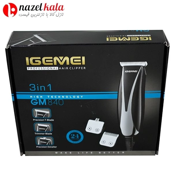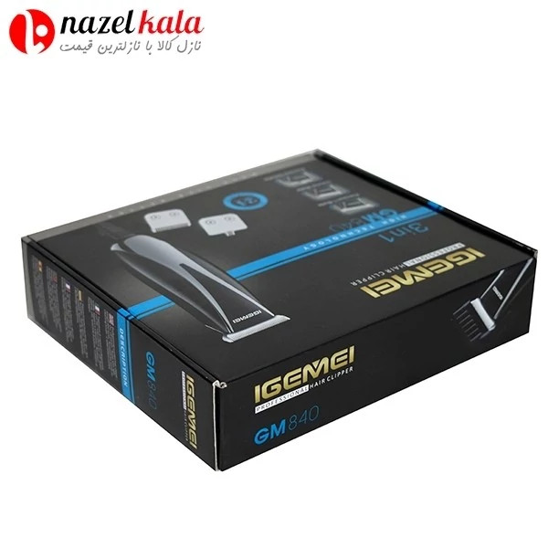 ماشین اصلاح جیمی مدل GM-840 . ویژگی های محصول سایر ویژگیها:طراحی ارگونومیک تعداد شانهها:2 عدد سایز شانهها:3 الی 12 منبع شارژ:کابل برق درپوش محافظ:دارد روغن:دارد برس تمیز کننده:دارد