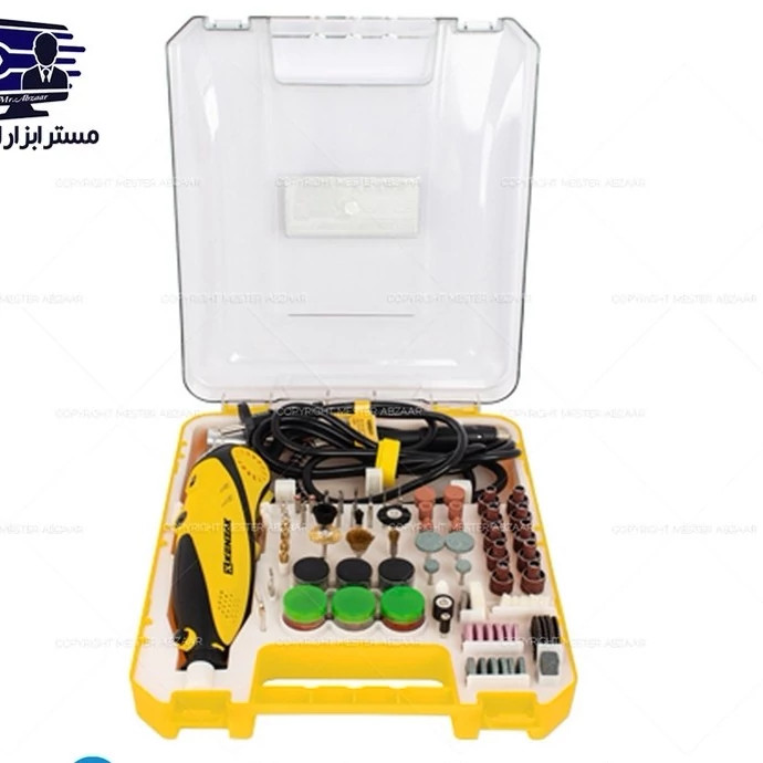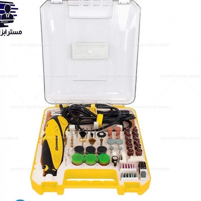 فرز انگشتی حکاکی مینیاتوری 212 پارچه کنزاکس با مدل KENZAX KDG-3535فرز مینیاتوری 135 وات 212 پارچه KDG-3535 محصول کنزاکس که از بهترین محصولات موجود در دسته فرز های مینیاتوری که به آنها فرز حکاکی هم گفته می شود، می باشد. این فرز کوچک و جمع و جور طراحی بسیار ظریف و فوق العاده ای دارد که دستهای شما را خسته نکرده و تجربه ای دلپذیر از کار را برای شما فراهم می آورد. فرز مینیاتوری یکی از انواع فرز ها است که به منظور ایجاد سوراخ های بسیار ریز، حجم تراشی های کم و کوچک، برش کاری، ایجاد طرح های بسیار ظریف و خاص روی چوب یا هر متریال دیگری مورد استفاده قرار می گیرند. فرز مینیاتوری همچنین جهت فرز کاری با دقت بالا و ظرافت بیشتر از قبیل مجسمه سازی، تراش کاری، قالب گیری، ساخت صنایع دستی و حتی صنایع پزشکی و دندانپزشکی مورد استفاده قرار می گیرد