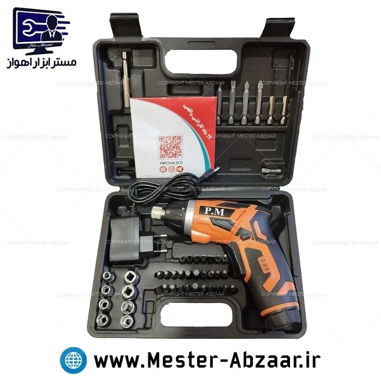 دریل پیچ بند تاشو با لوازم آنکور 3.6 ولت DM 3.6V p.m anchor کد ۶۱۳۰