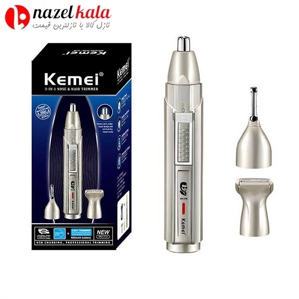 موزن گوش و بینی و ابرو کیمی مدل KM-315 ویژگی های محصول رضایتمندی:⭐⭐⭐⭐⭐ تیغه استیل ضدزنگ و ضدحساسیت قابلیت استفاده برای گوش، بینی و ابرو منبع تغذیه دوگانه (باتری AAA + USB) قدرت موتور: 2 وات ولتاژ کاری: 5 ولت زمان کارکرد: 60 دقیقه زمان شارژ: 6 ساعت قابلیت شستشو طراحی ارگونومیک و جمعوجور سرعت موتور: 6500 دور در دقیقه سطح صدای کمتر از 50 دسیبل همراه با 3 سر مخصوص (بینی، گوش، ابرو) شامل کابل USB، برس تمیزکننده مناسب برای استفاده خانگی و مسافرتی بدنه از جنس ABS درجه پزشکی تیغه با پوشش نانو سیستم قطع خودکار بعد از 30 دقیقه مدار محافظ اضافه بار