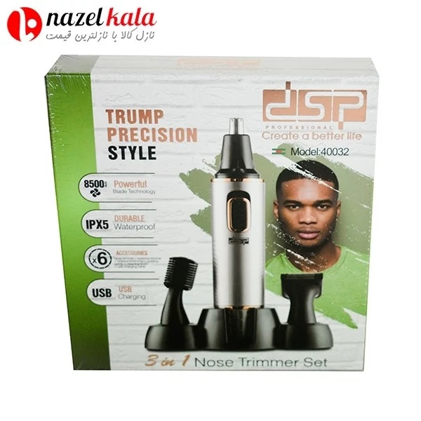 موزن گوش و بینی و ابرو سه کاره دی اس پی مدل DSP40032 ویژگی های محصول ✅ طراحی سهکاره (گوش، بینی و ابرو) ✅ تیغه استیل ضد زنگ ✅ باتری قابل شارژ با استفاده 40 دقیقهای ✅ سریهای قابل شستوشو ✅ وزن سبک و طراحی ارگونومیک ✅ صدای کم و مناسب انواع پوست ✅ شارژ سریع با کابل USB ✅ اقلام همراه: سریها، برس تمیزکننده،