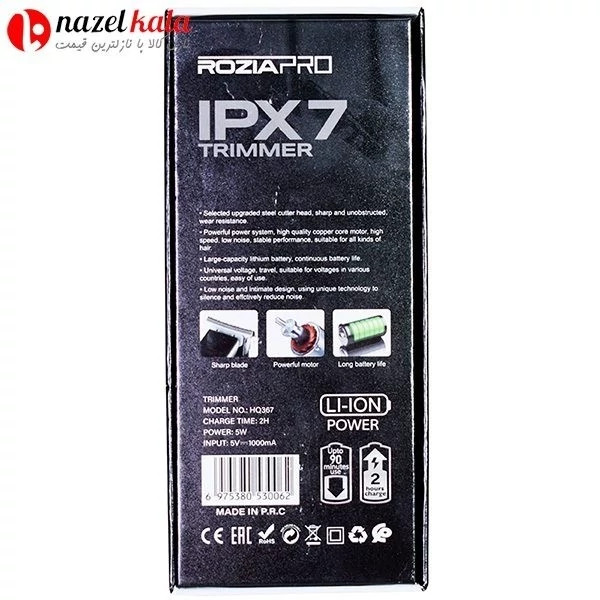 ماشین اصلاح روزیا پرو تریمر مدل HQ-367 . ویژگی های محصول پرو تریمر مناسب آرایشگاه برش حرفه ای موتور پر قدرت سه عدد شانه اصلاح IPX7