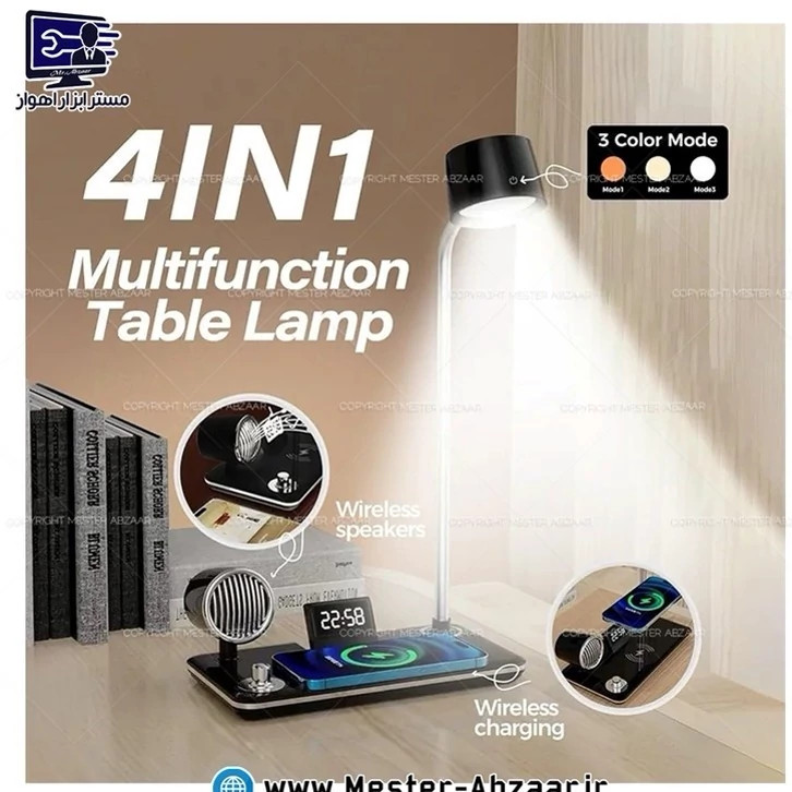شارژر وایرلس اسپیکر دار و چراغ مطالعه مدل bt speaker 4 in 1 کد ۵۶۱۳