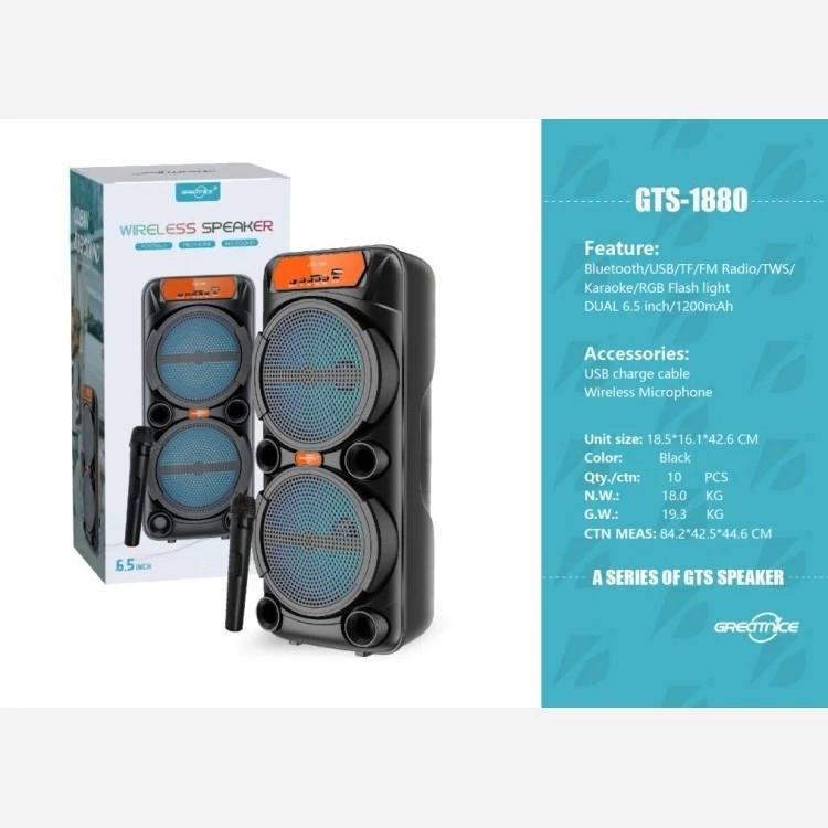 اسپیکر بلوتوثی gts 1880 برند : Gts دستهبندی : اسپیکر دو ساب 6.5 برچسبها: اسپیکر شیک اسپیکر خوانندگی اسپیکرچمدانی اسپیکر جمع و جور اسپیکر مهمونی اسپیکر عمده شیراز gts 1880 ارتفاع : 42 ثانتی متر اتصال : aux. usb.مموری رقص نور : دارد