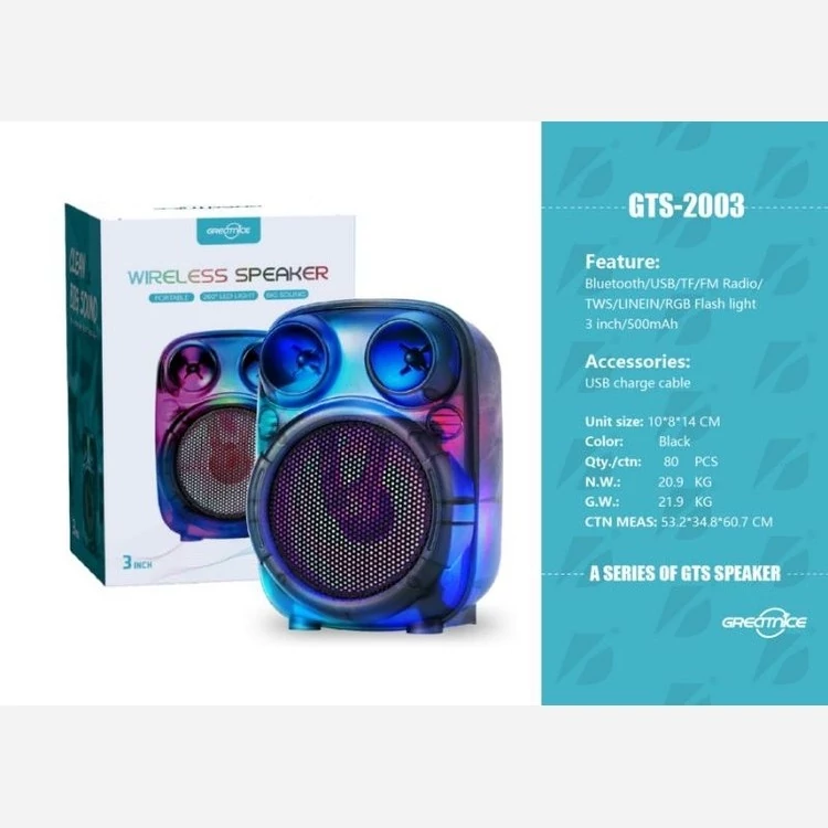 اسپیکر شارژی GTS 2003 GTS 2003 برند : Gts دستهبندی : اسپیکر 3 اینچ برچسبها: GTS 2003 اسپیکر شیراز اسپیکر عمده شیراز خرید اسپیکر gts 2003 اسپیکر استور کوچولوی کاربردی اسپیکر آبی اسپیکر قابل حمل اسپیکر کوچیک سایز اسپیکر : 14 سانتی متر رنگ : شفاف باتری : 500 میلی آمپر سایز : 3 اینچ بلوتوث : دارد رادیو : دارد فضای پوشش دهی : 60 متر میزان شارژ دهی : 2 ساعت اقلام همراه : سیم شارژر ورودی میکروفن : ندارد پارتی لایت : دارد