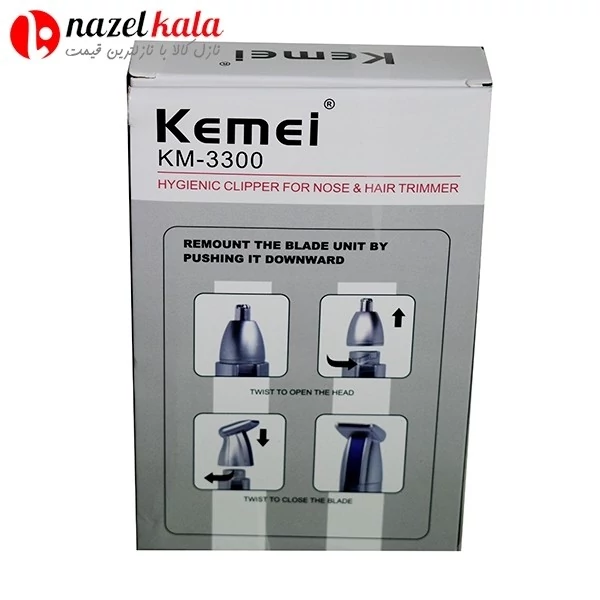 موزن بینی و خط زنی دوکاره کیمی مدل Kemei-3300 . ویژگی های محصول جنس تیغه: استیل ضد زنگ قابلیت شستوشو: سری قابل شستوشو تکنولوژی اصلاح: برش چرخشی دوکاره بودن: موزن بینی و خط زنی عملکرد بیصدا: موتور کمصدا طراحی ارگونومیک: خوشدست و راحت در استفاده قابل حمل: سبک و مناسب برای سفر